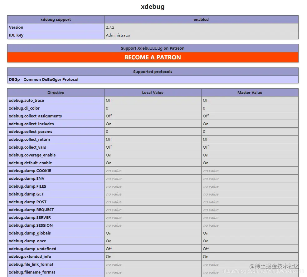 到这里xdebug的下载和安装启用就完成了,重新在php代码中打印 phpinfo()函数 在打开的信息页面中如果有出现下图效果才能说明安装正确!