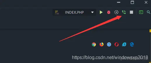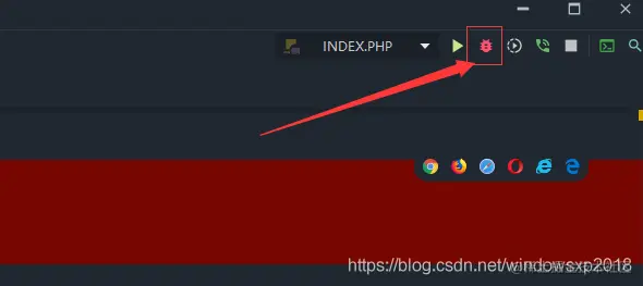 然后按下键盘上的shift+F9 或 直接点phpStorm IDE右上角的小虫图标
