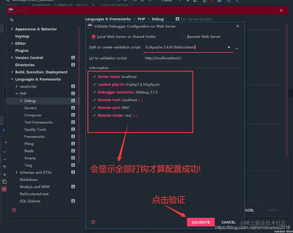 再次打开File--->Settings--->Languages & Frameworks(语言与框架中)--->PHP---->Debug