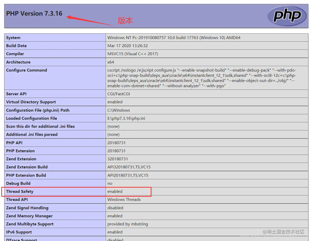 所以我们这里要先知道目前你安装的php版本是多少! 我的版本是php7.3.16带ts