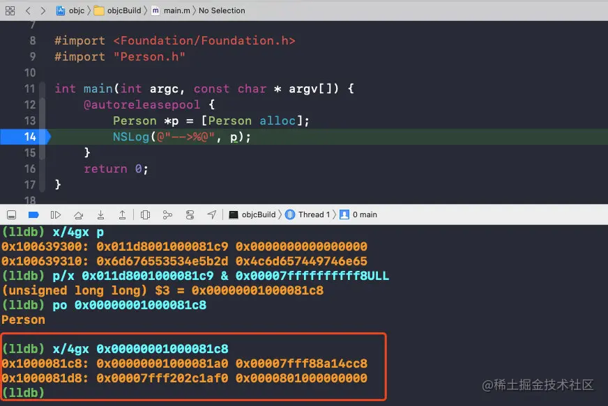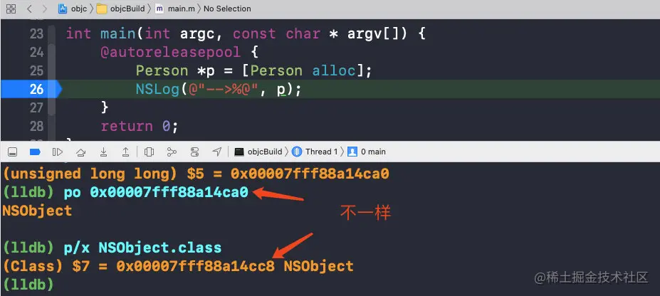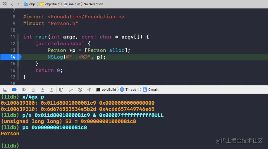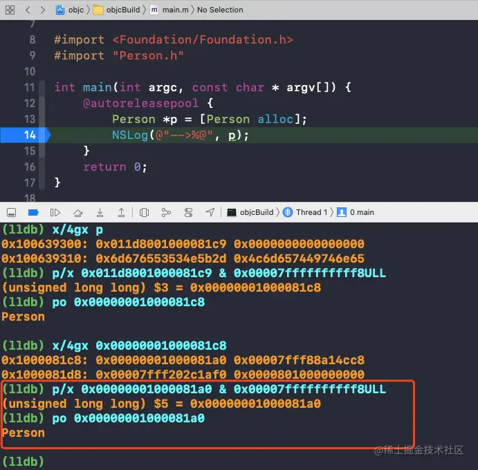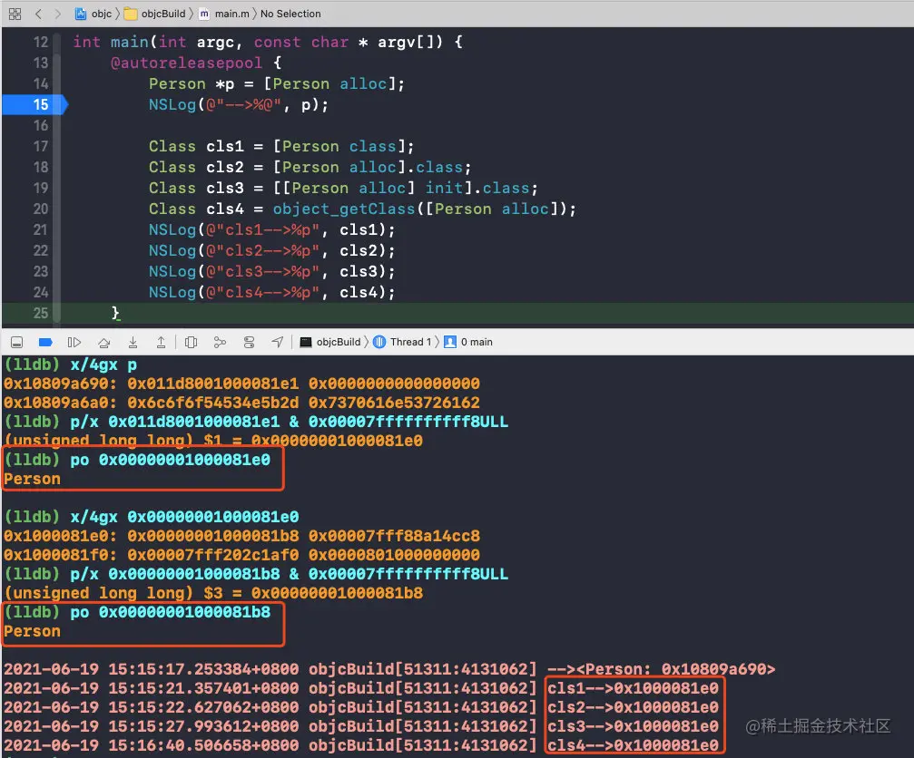 可以发现,多种方式创建的Person类,在内存中地址都一样0x1000081e0,那么也就是上图中第一次得到的地址为0x00000001000081e0的才是我们的Person类