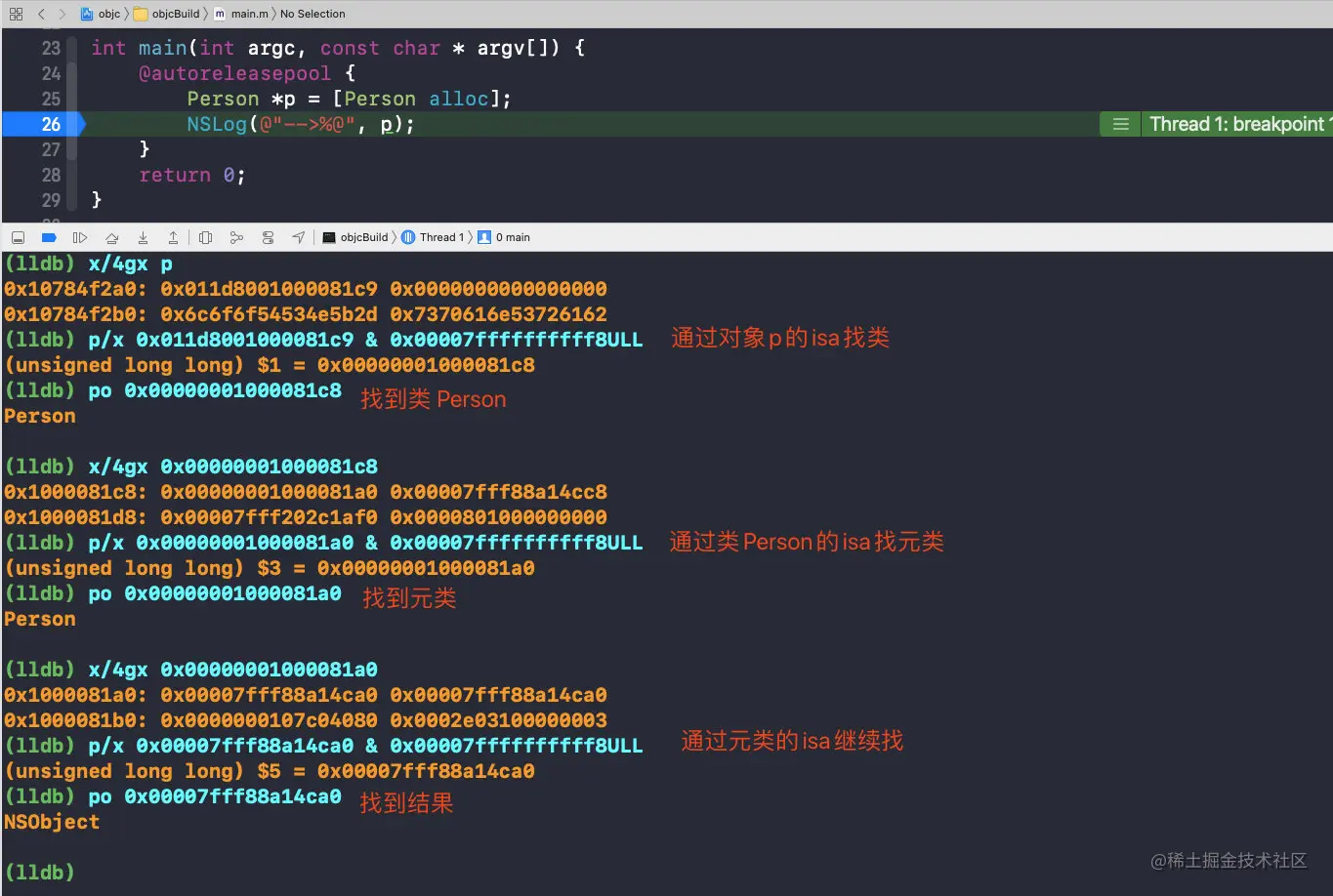 书接上文,我们通过对象的isa找到了类,我们又根据类的isa找到了元类,那么我们进行大胆的假设,是不是能够根据元类的isa还能找到什么东西呢?