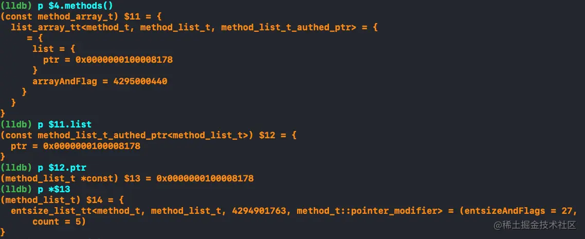 我们发现method_t中的结构体big与property_t结构体相似,那么我们是不是只要获取到big结构体就可以拿到数据了呢?获取big结构体,通过一下方法: