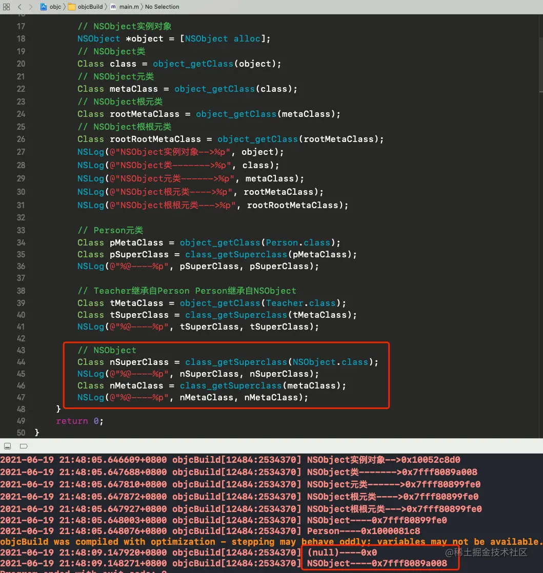 NSLog(@"NSObject根元类---->%p", rootMetaClass);