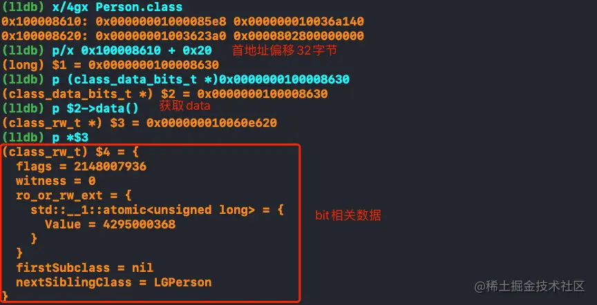 我们可以根据地址与ASLR偏移之后,找到_OBJC_METACLASS_$_Person,我们将它称为Person的元类,它是由系统生成和编译的