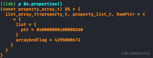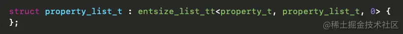 我们研究发现:properties()是个property_array_t类型,而property_array_t继承自list_array_tt<property_t, property_list_t, RawPtr>,最终返回了一个property_list_t类型的数组,元素类型为property_t,property_list_t在底层却没有具体实现: