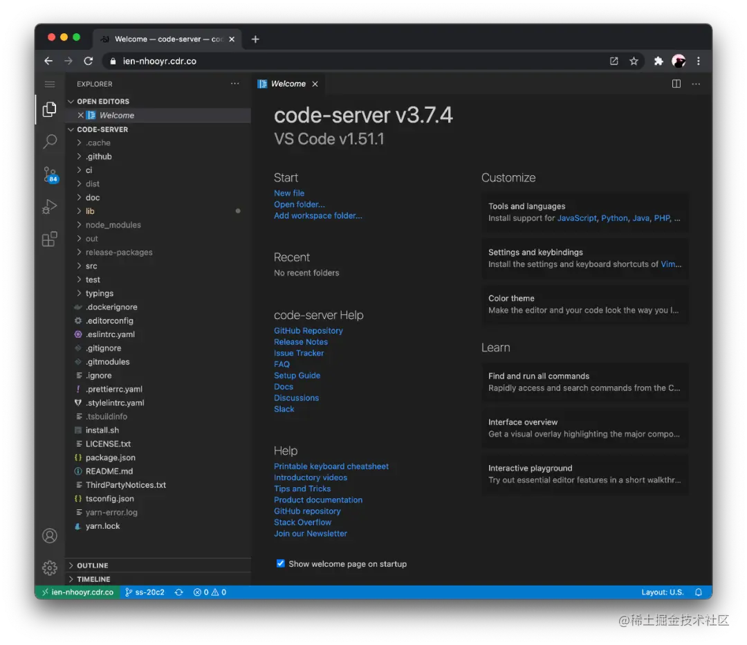 官方提供了一个脚本来为 Linux、macOS 和 FreeBSD 安装 code-server。
