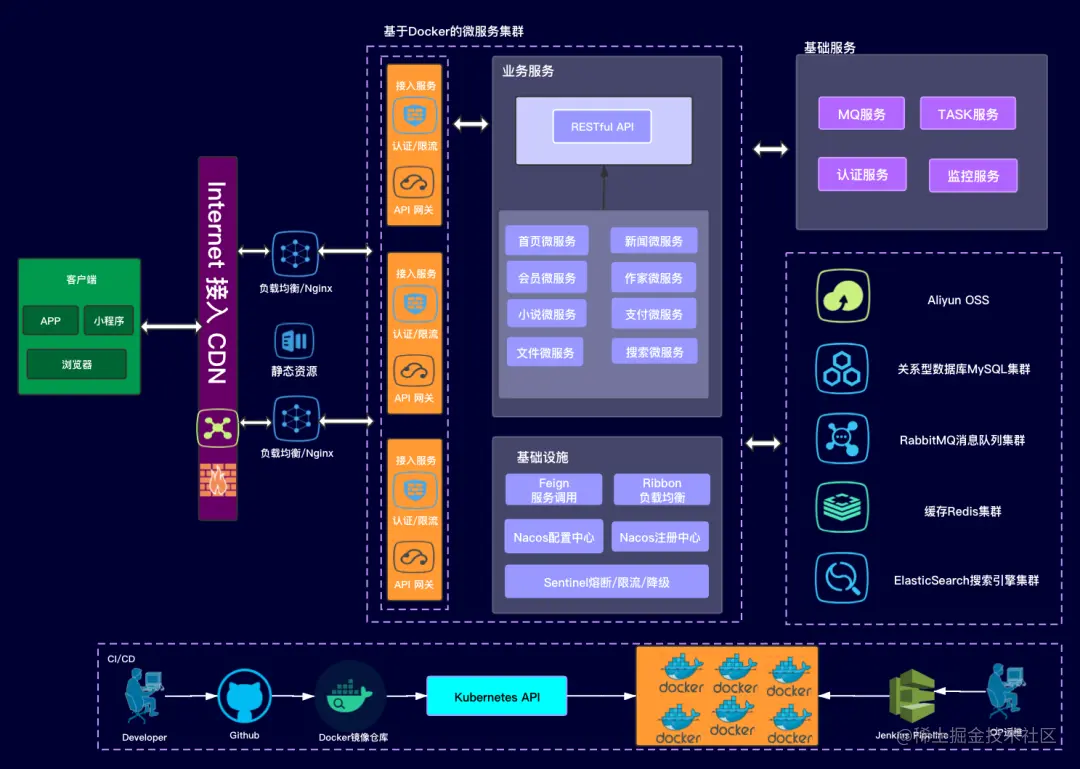 相比于上文提到的技术架构,微服务版本进行了重构,使其能够处理高并发、高可用、高性能、高容错的问题,增强了可扩展性和可维护性。