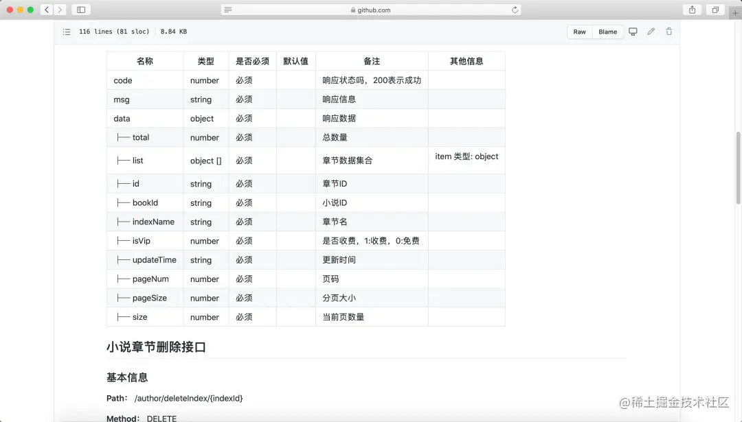 除了提供系统搭建部署教程,作者也提供了详细的接口文档。