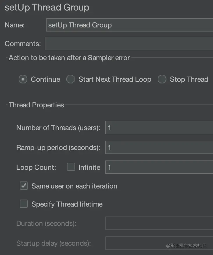 - 右键单击 Test Plan,把鼠标移至 Add,再移至 Threads(User),点击 setUp Thread Group