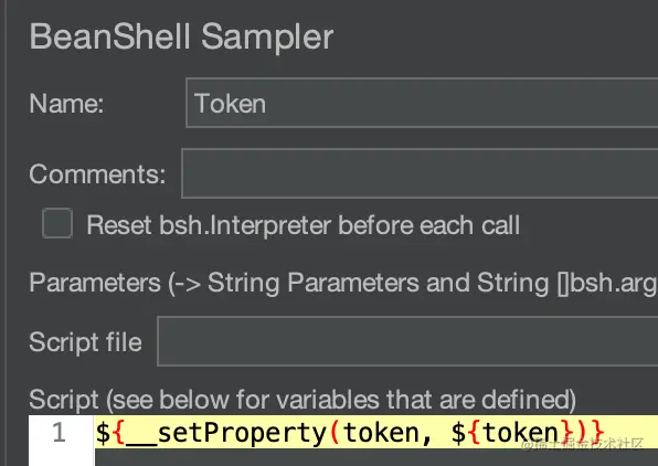 "token":"(.+?)",Template 为$1$ - 右键单击 setUp Thread Group,把鼠标移至 Add,再移至 Sample,点击 BeanShellSampler,设置 Name 为 Token,Script 为