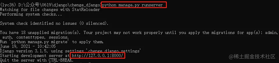 3.启动Django项目
