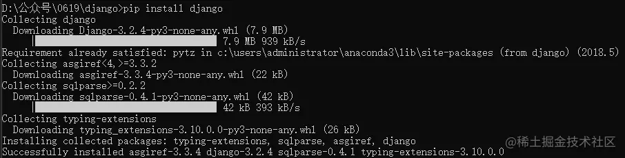 通过上面的命令可以安装好django环境