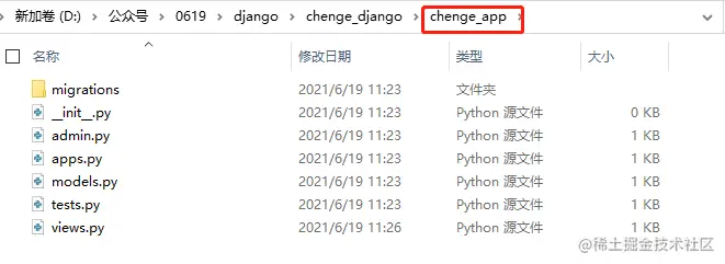 通过命令可以创建一个名为:chenge_app的应用
