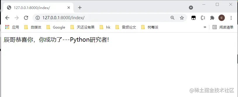 return HttpResponse("辰哥恭喜你,你成功了---Python研究者!")