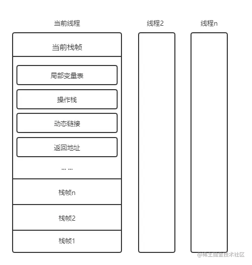 虚拟机栈(Java Virtual Machine Stack)与程序计数器一个样也是线程私有的,虚拟机栈表示Java方法执行的内存模型:每一个方法被执行时,Java虚拟机都会创建一个栈帧用于存储局部变量表、操作数栈、动态链接、方法出口等信息,每个方法被调用到执行完毕的过程,对应着一个栈帧在虚拟机栈中入栈到出栈的过程。
