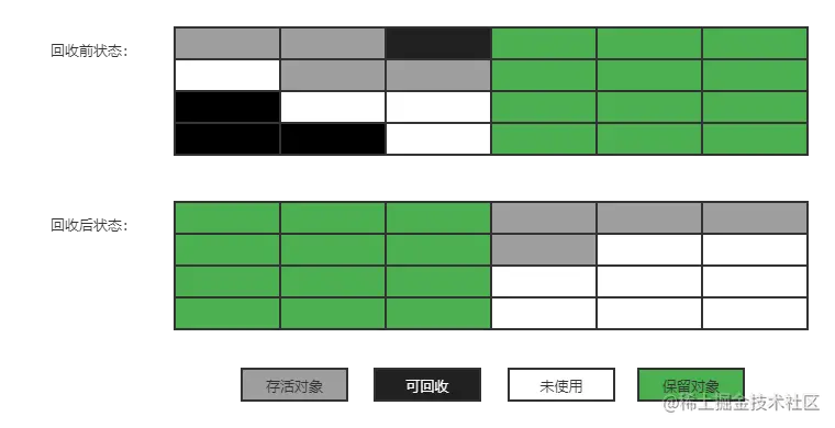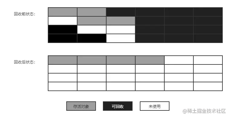 - 内存空间碎片化,标记、清除之后会产生大量的不连续的内存碎片,空间碎片太多可能导致当以后程序运行过程中需要分配较大的对象时无法找到足够的连续内存而不得不提前触发另一次垃圾收集动作