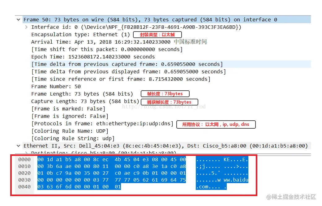 我们的例子一访问www.baidu.com为例(使用wireshark进行解析)。