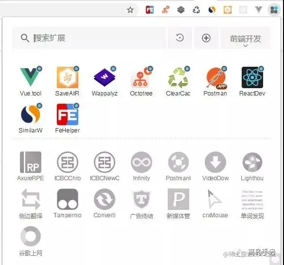 给大家安利了这么多插件, 为了方便管理和使用最后再推荐一个Extension Manager, 你可以用它来对你安装的插件进行分组管理;还可以快速的切换插件的开启与关闭,你可以配置排序规则, 根据你的使用评率来排序这些插件。