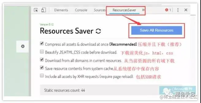一键下载网页资源(Save All Resources),可以完美的满足我们的需求
