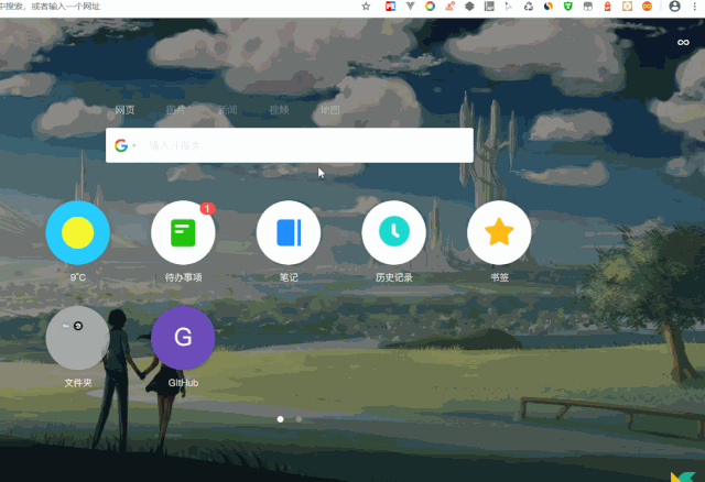 最后要给大家安利的就是Infinity,功能强大的新建标签页扩展!做的界面很美,每日壁纸质量也很高!有同步笔记、代办事项等,同时,喜欢它的网页图标,提供了很多常用网站的图标,自定义书签时很好看唯一的缺点,就是感觉启动比较慢