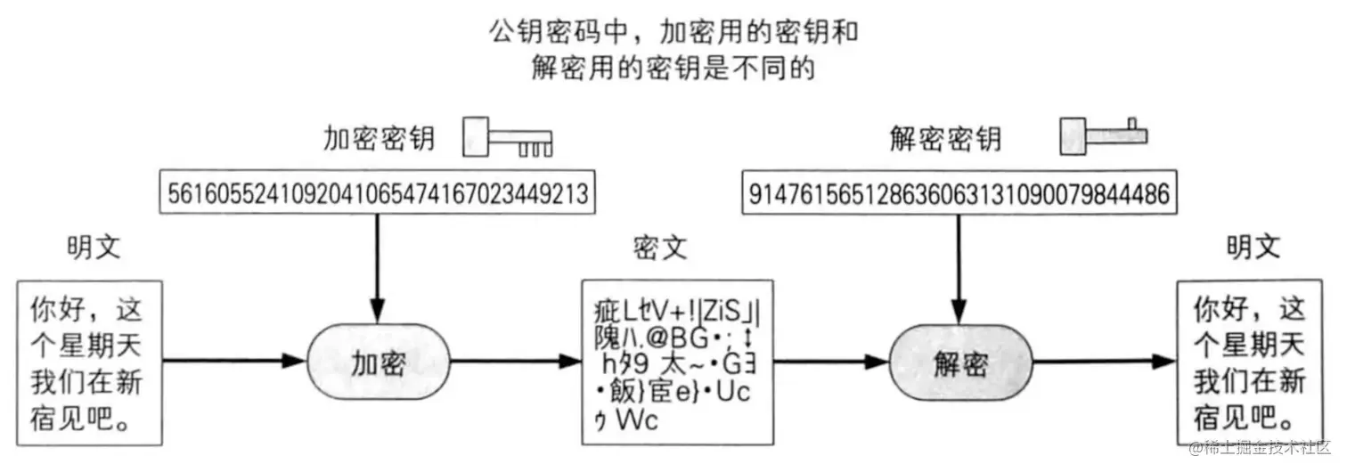 加密密钥:一般是公开的,因此该密钥称为公钥(public key)。因此,非对称加密也被称为公钥密码(Public-key Cryptography)。