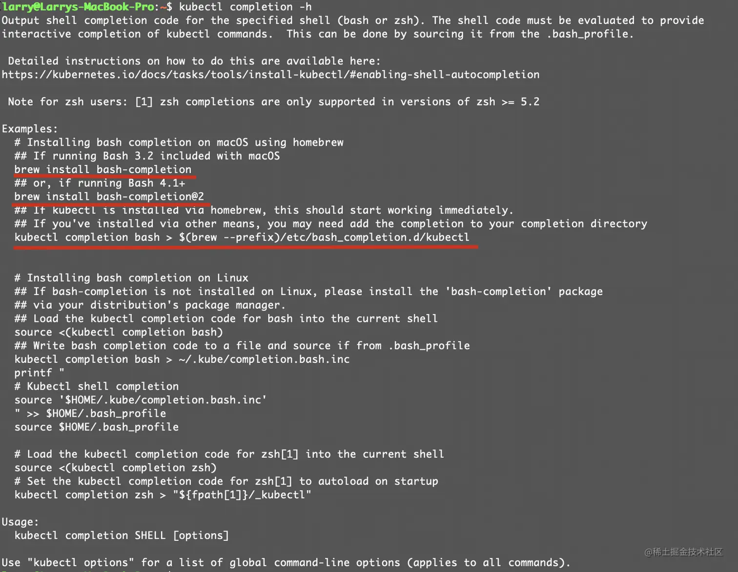 $ kubectl completion bash > $(brew --prefix)/etc/bash_completion.d/kubectl