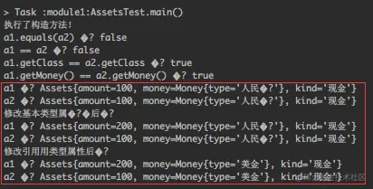 System.out.println("a1.getMoney() == a2.getMoney() → " + (a1.getMoney() == a2.getMoney()));