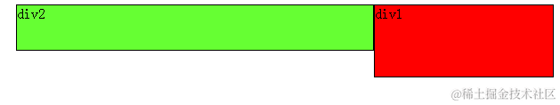 那么假如页面中只有两个元素div1、div2,它们都是右浮动呢?读者此时应该已经能自己推测场景,如下: