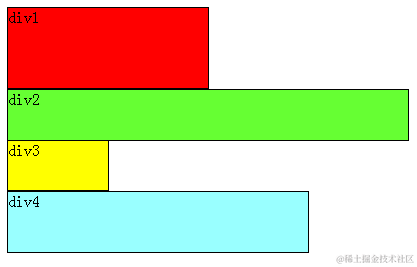 假如我们把div2、div3、div4都设置成左浮动,效果如下: