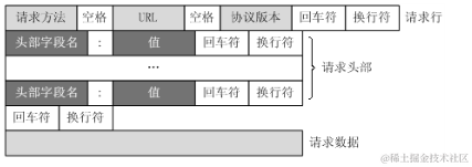 HTTP请求报文由3部分组成(请求行+请求头+请求体):