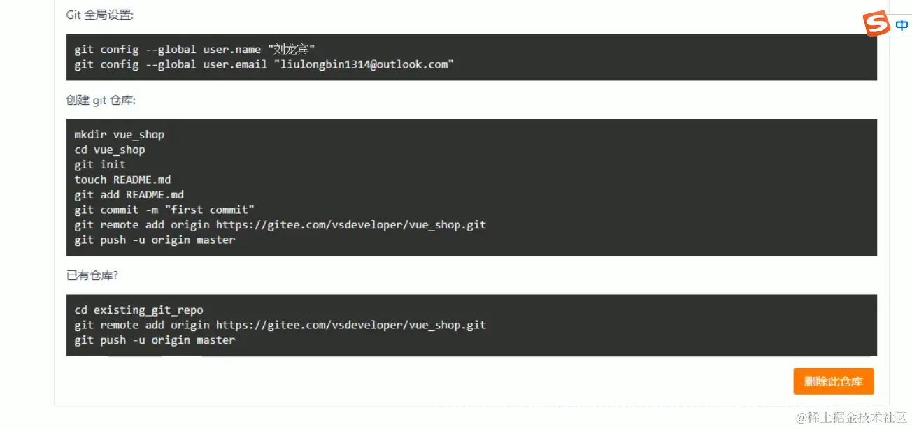 建立好仓库之后输入如下代码