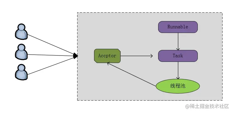 伪异步IO通信模型图: