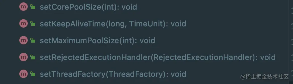 线程池提供了一些API,可以动态获取线程池的状态,并且还可以设置线程池的参数,以及状态: