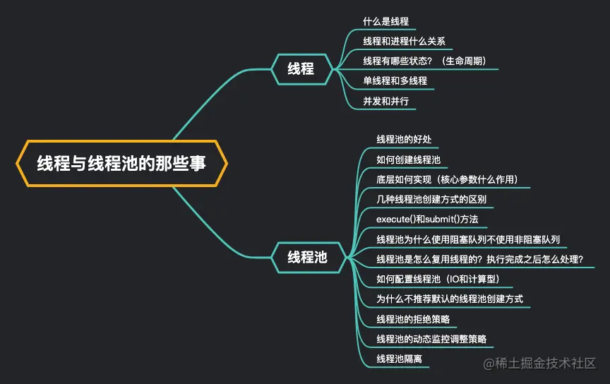 线程和线程池相关的知识,是Java学习或者面试中一定会遇到的知识点,本篇我们会从线程和进程,并行与并发,单线程和多线程等,一直讲解到线程池,线程池的好处,创建方式,重要的核心参数,几个重要的方法,底层实现,拒绝策略,参数设置,动态调整,线程隔离等等。主要的大纲如下: