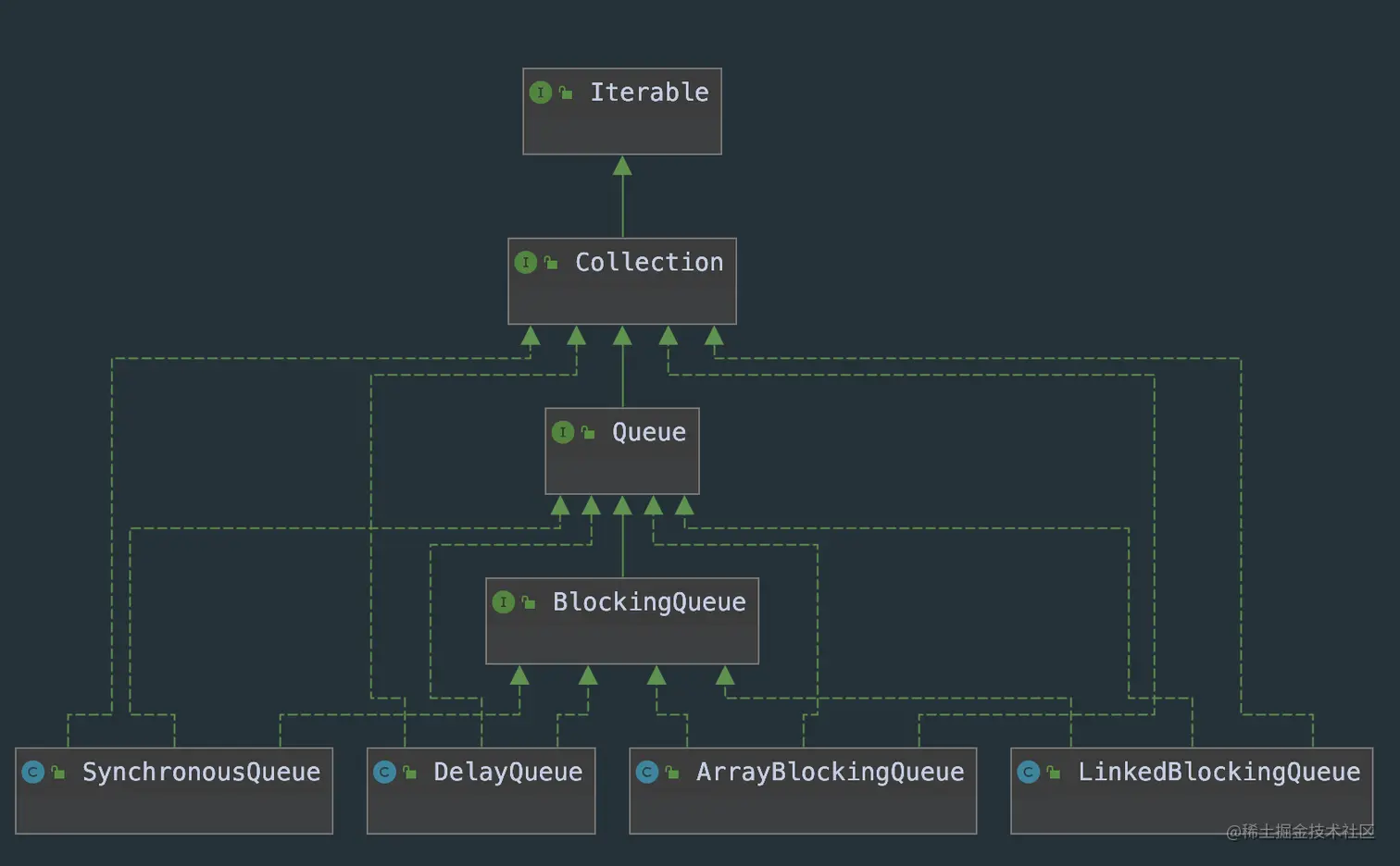 阻塞队列,首先是一个队列,肯定具有先进先出的属性。