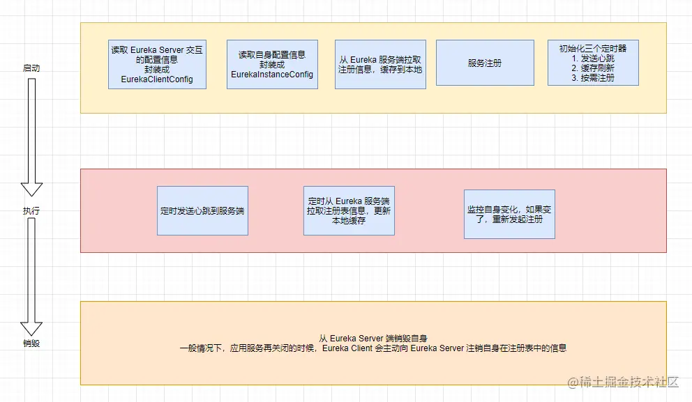 Client 将自己的服务信息通过一定的方式登记到 Server 上,并在正常范围内维护自己信息一致性,方便其他服务发现自己,同时可以通过 Server 获取到自己依赖的其他服务信息,完成服务调用,还内置了负载均衡器,用来进行基本的负载均衡