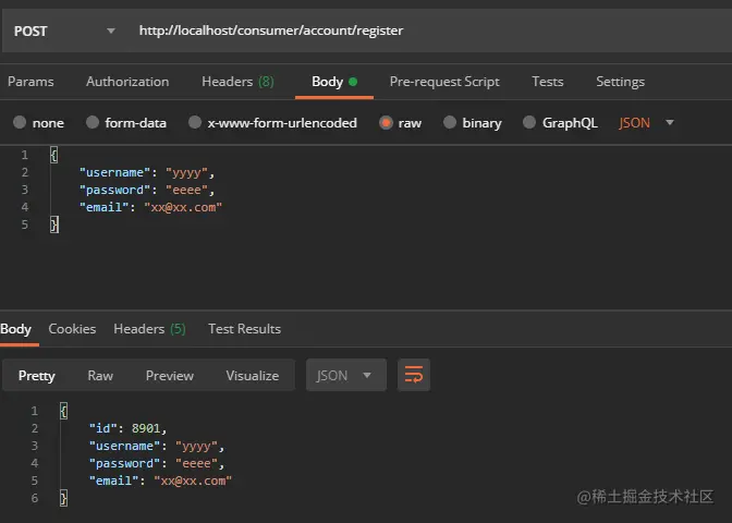 consumer 收到注册请求:Account(id=null, username=yyyy, password=eeee, email=xx@xx.com)consumer 收到 provider 返回结果:Email(email=xx@xx.com, content=偷偷改一下内容)