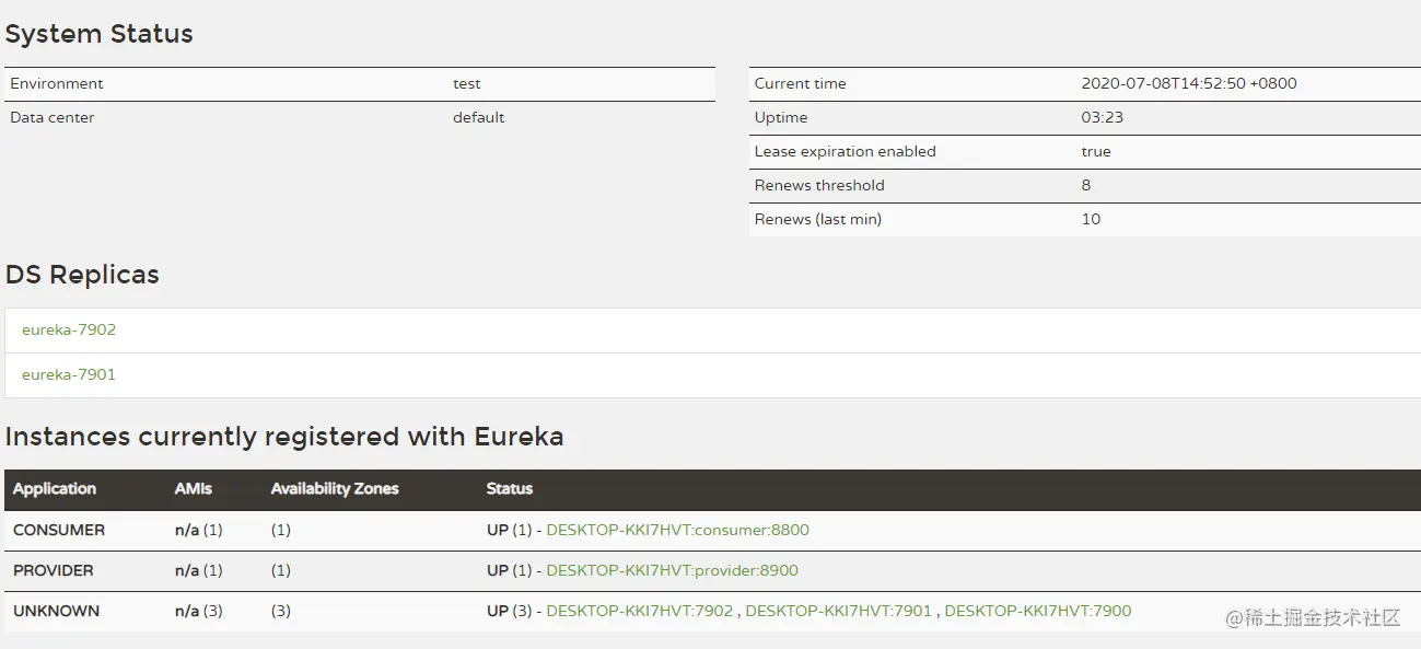 启动服务,分别打开 http://localhost:7900/,http://localhost:7901/ ,http://localhost:7902/ 可以看到 consumer 已经成功注册到了注册中心