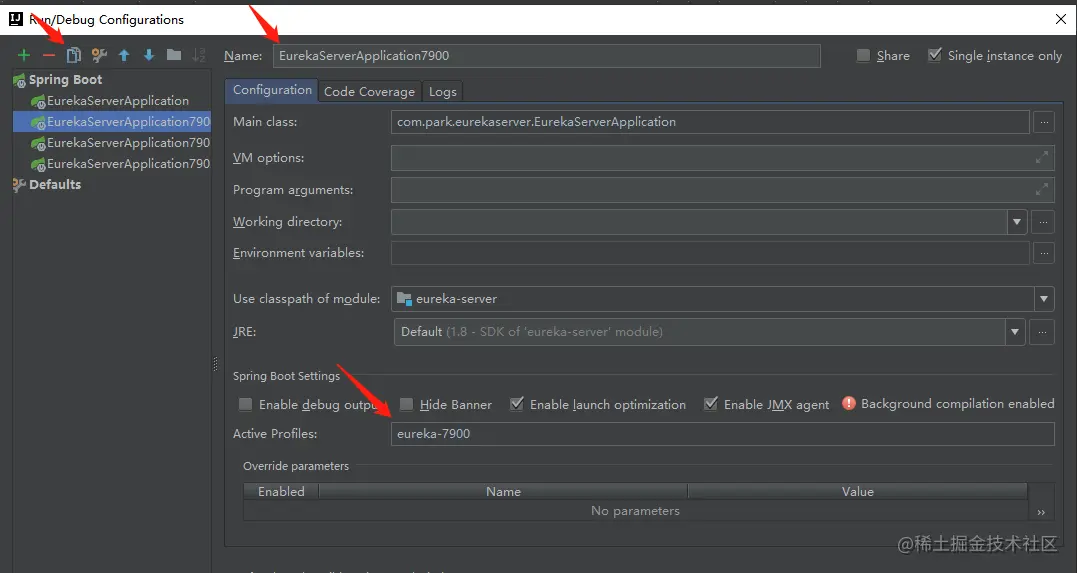 在上述操作的基础上,添加一个配置文件 application-eureka-7900.yml
