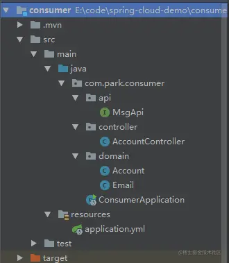 package com.park.consumer.api;import com.park.consumer.domain.Email;import org.springframework.cloud.openfeign.FeignClient;import org.springframework.web.bind.annotation.PostMapping;import org.springframework.web.bind.annotation.RequestBody;/** * 这个类的所有注解都是给 Feign 看的,它会根据这里的注解来去组装一个 http 请求 * 注解 FeignClient 标注服务名 * @author BarryLee */@FeignClient(name = "provider")public interface MsgApi { /** * OpenFeign 相比较 Feign,它可以支持 SpringMVC 注解 * 发送邮件 */ @PostMapping("/msg/sendEmail") Email sendEmail(@RequestBody Email email);}