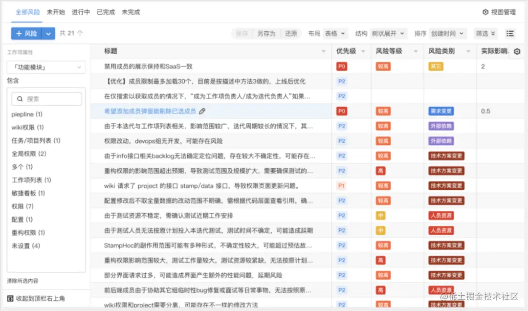 在敏捷项目管理中,识别风险是首要任务,也是最困难的部分。其难点在于,团队是人的组合,而每个人在项目执行中都有自己思考问题的角度和方式,加上因为职能团队间的目标没有对齐,信息不够透明,最终导致风险跟踪与反馈不及时。