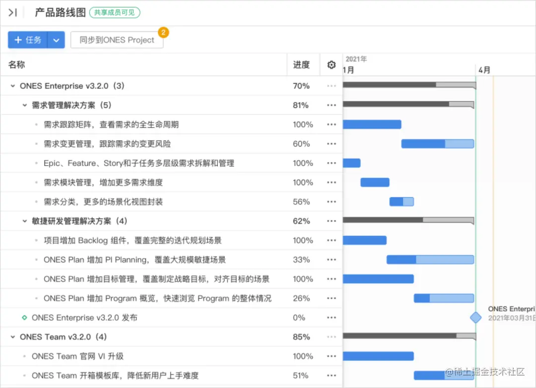 ONES 「项目计划」,规划产品路线图