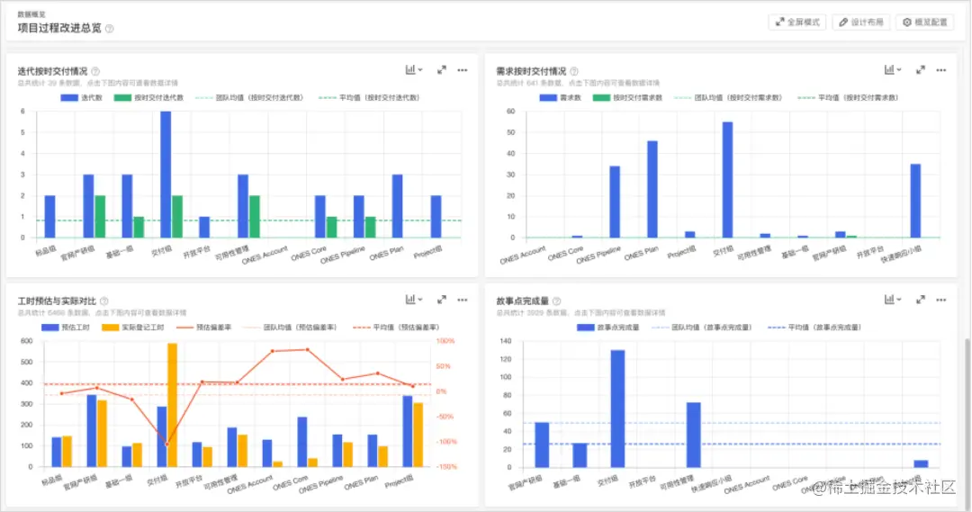 项目复盘阶段,团队需要分析和考察,进行团队效能分析,以便持续改进。在一些传统的大型团队中,各部门之间的研发和工程数据往往散落在不同的平台中,依赖项目经理在各个系统间游走收集和分析数据,极大地增加了时间成本,且不同系统间的数据统计标准不同,数据精度不够。