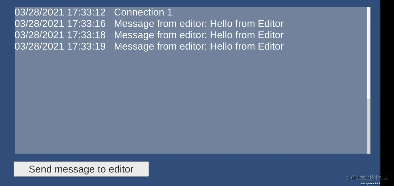 实现与 Unity Profiler 一样可以连接手机进行通信,来接收 App 发送的信息或发送消息给 App,而 Unity 有开放 EditorConnection 和 PlayerConnection 接口,可以使用它们来实现。