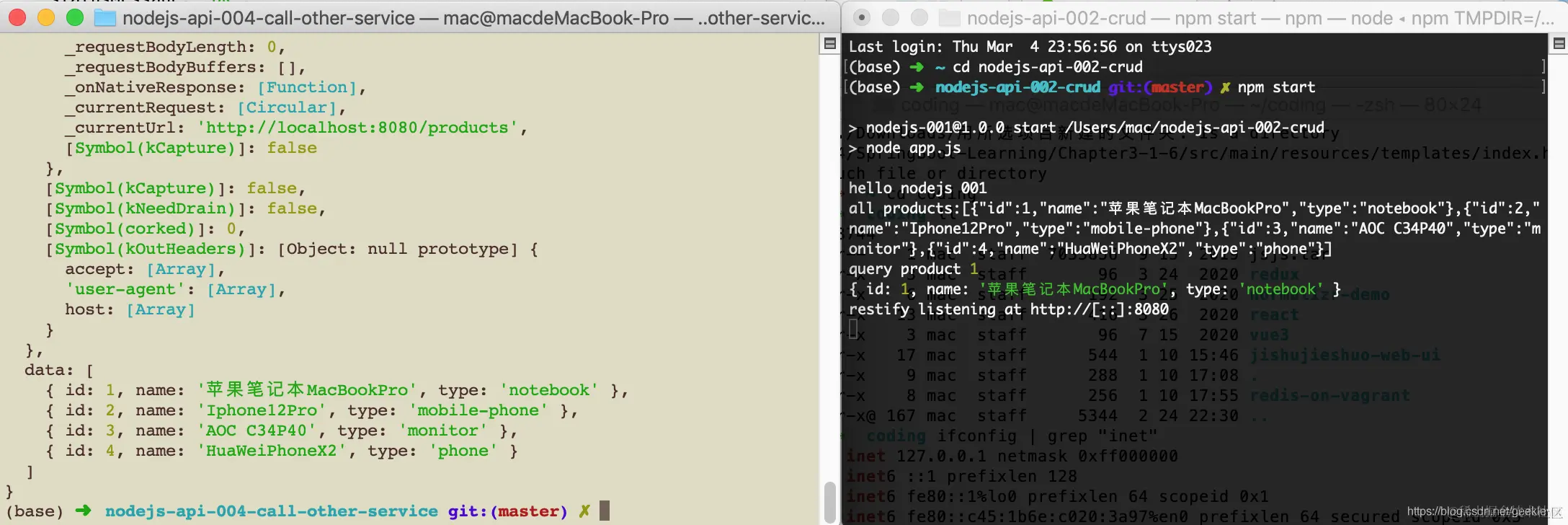 上面代码保存为 getProducts.js, 执行下面命令运行,效果如下: