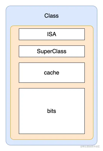 bits的内存偏移量为isa+superclass+cache,总大小为32