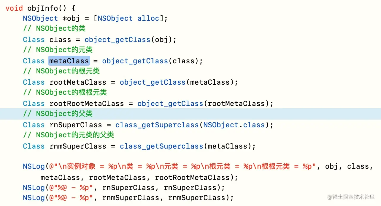 NSObject的父类是nil,其元类的父类还是NSObject父类的元类也有继承关系。