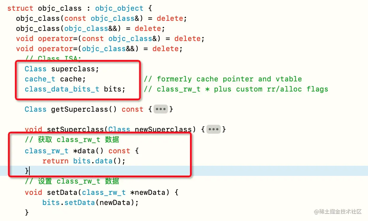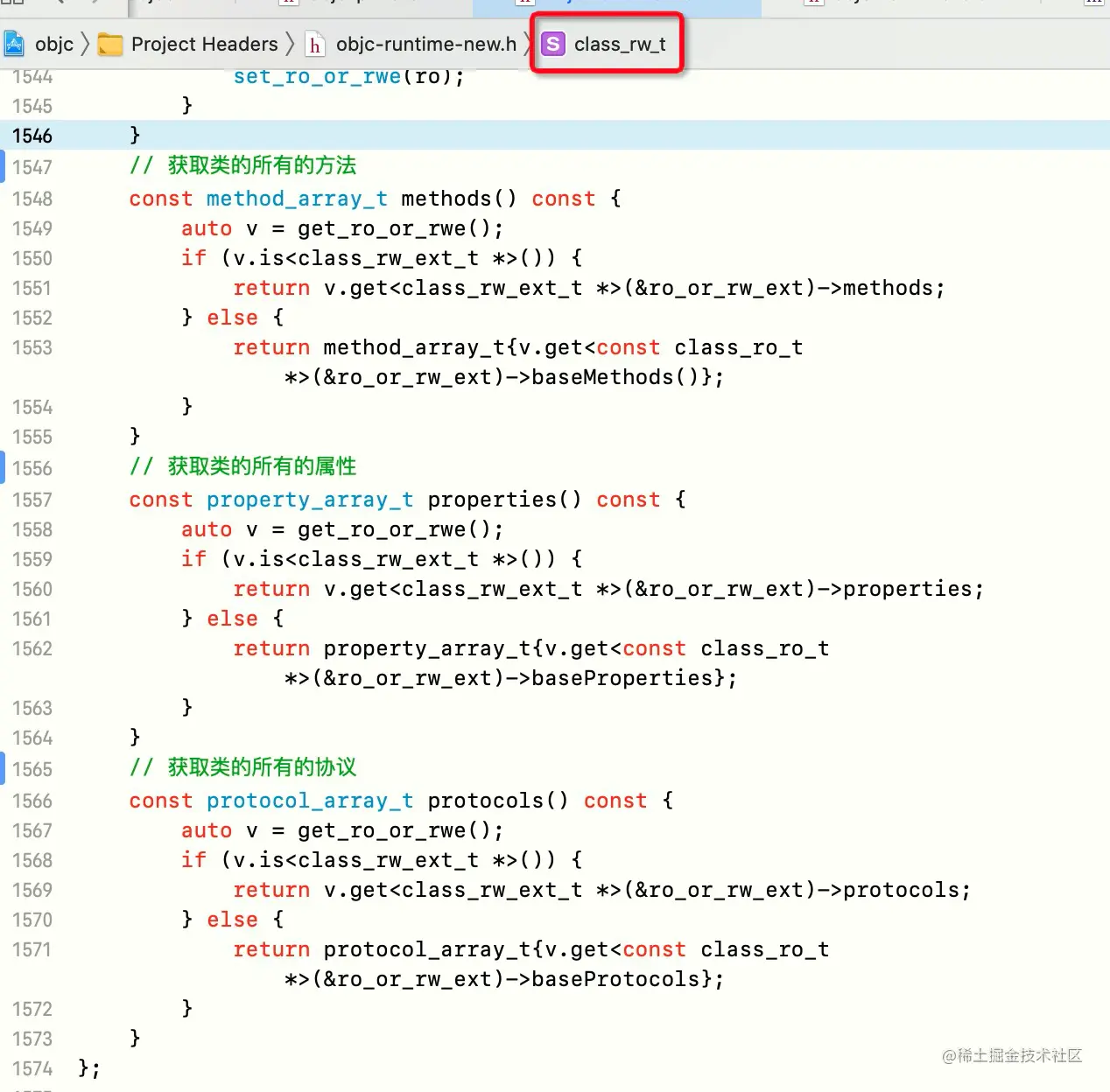 这样 class_rw_t 的数据就可以拿到了,但是并不知道所需的属性和方法具体存在哪里。