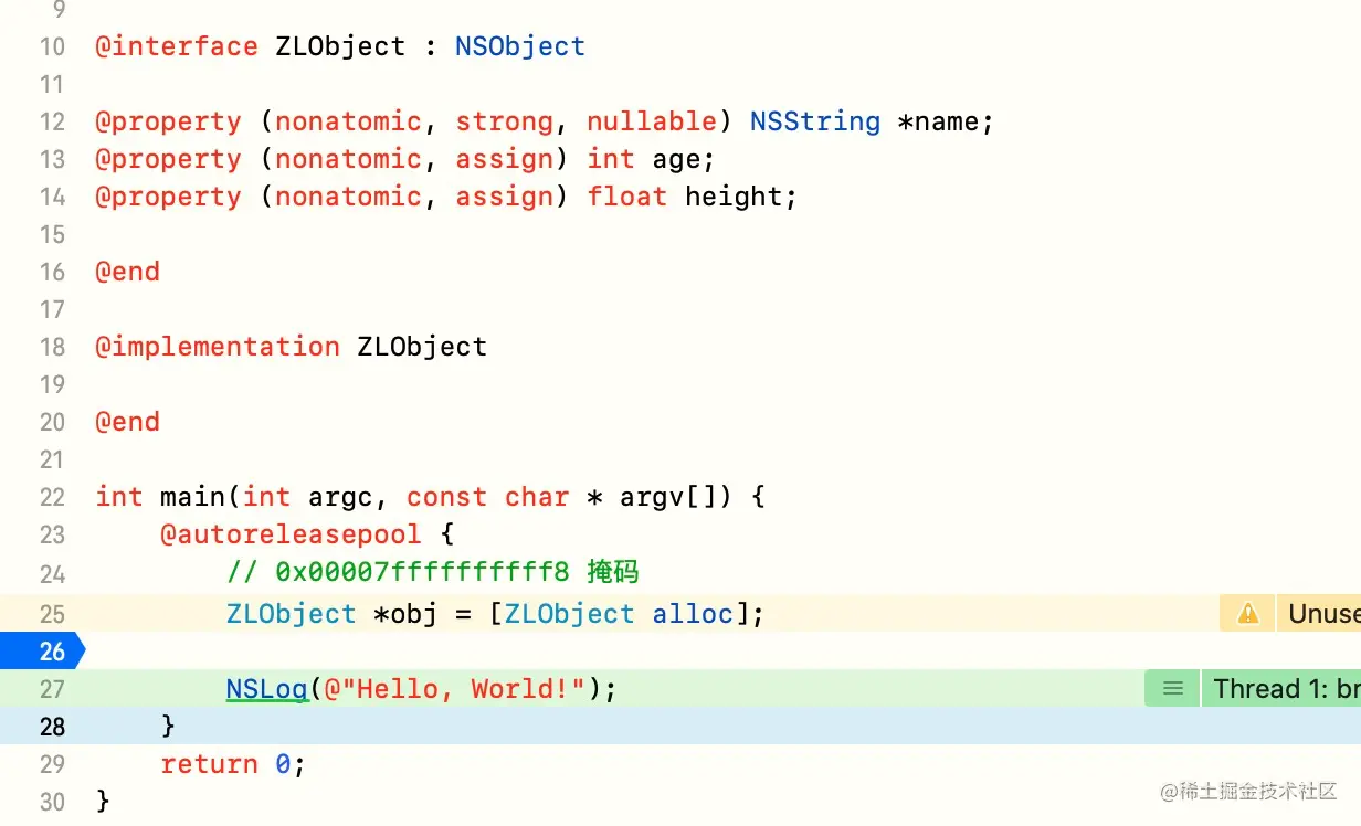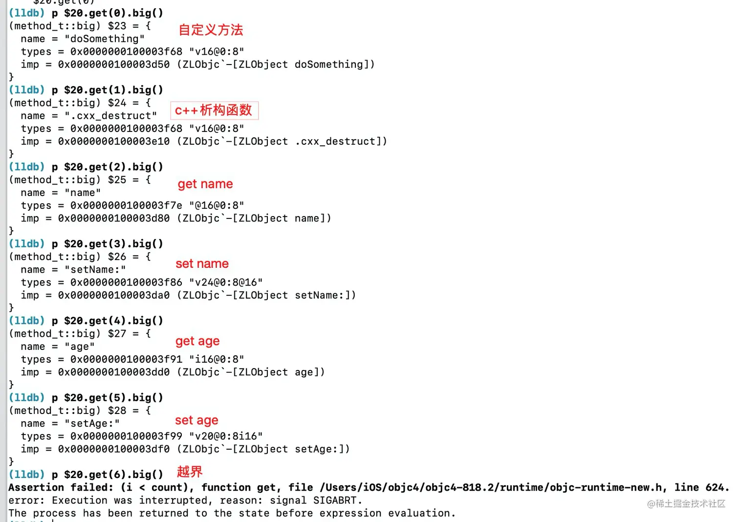 0x0000000100008260的内存地址,其符号下标就是_OBJC_CLASS_$_ZLObject,也就是ZLObject。- 找到了